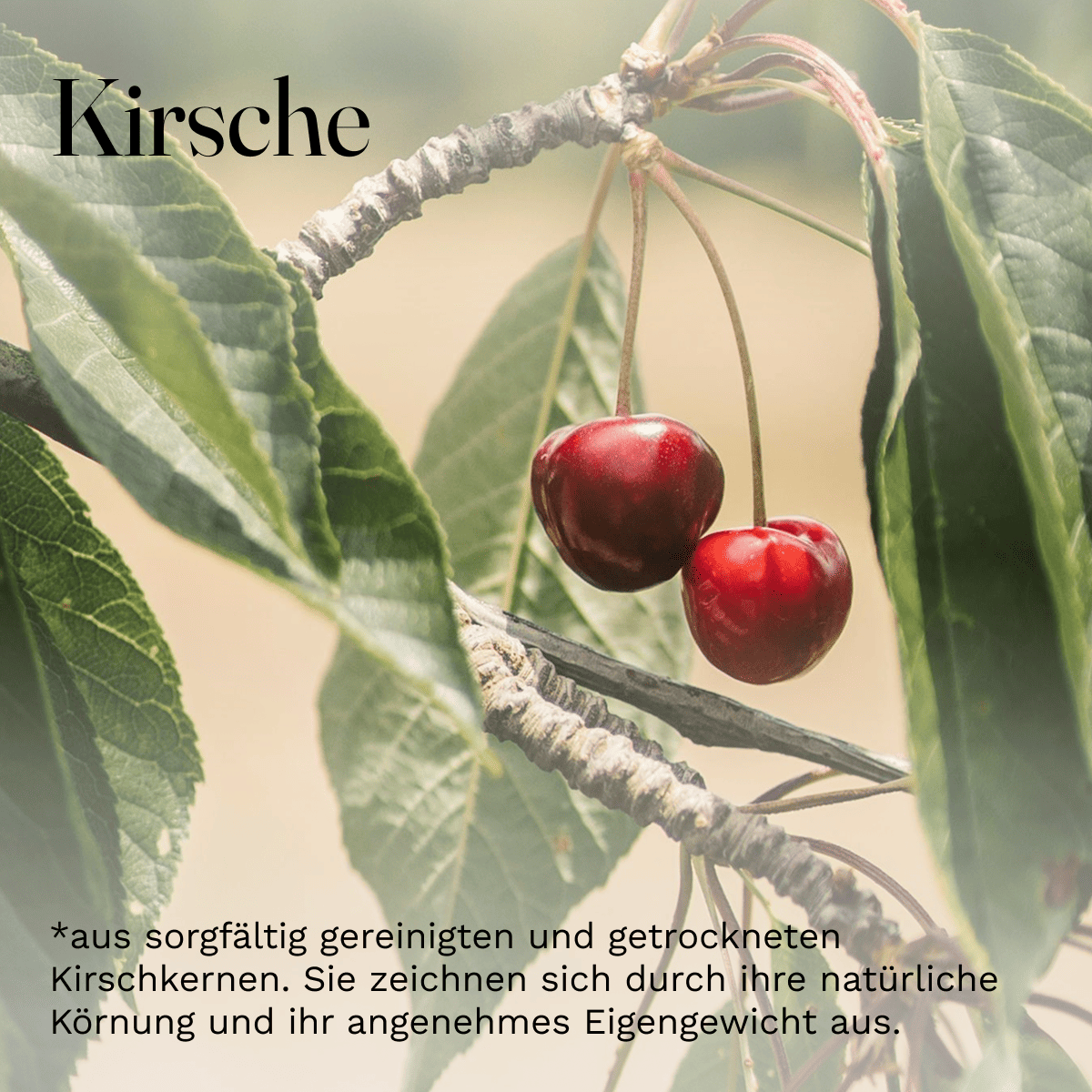 The cherry stones are cleaned without the use of chemicals in a special process in which they are heat-treated and dried. All stones come from a new harvest.
